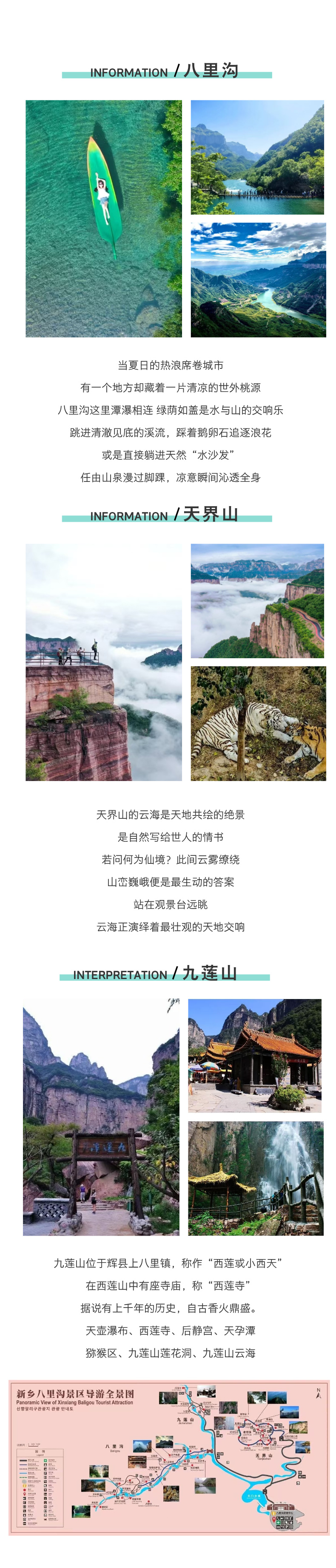 费用包含:八里沟景区(含天界山、九莲山);景区交通车40元/人;